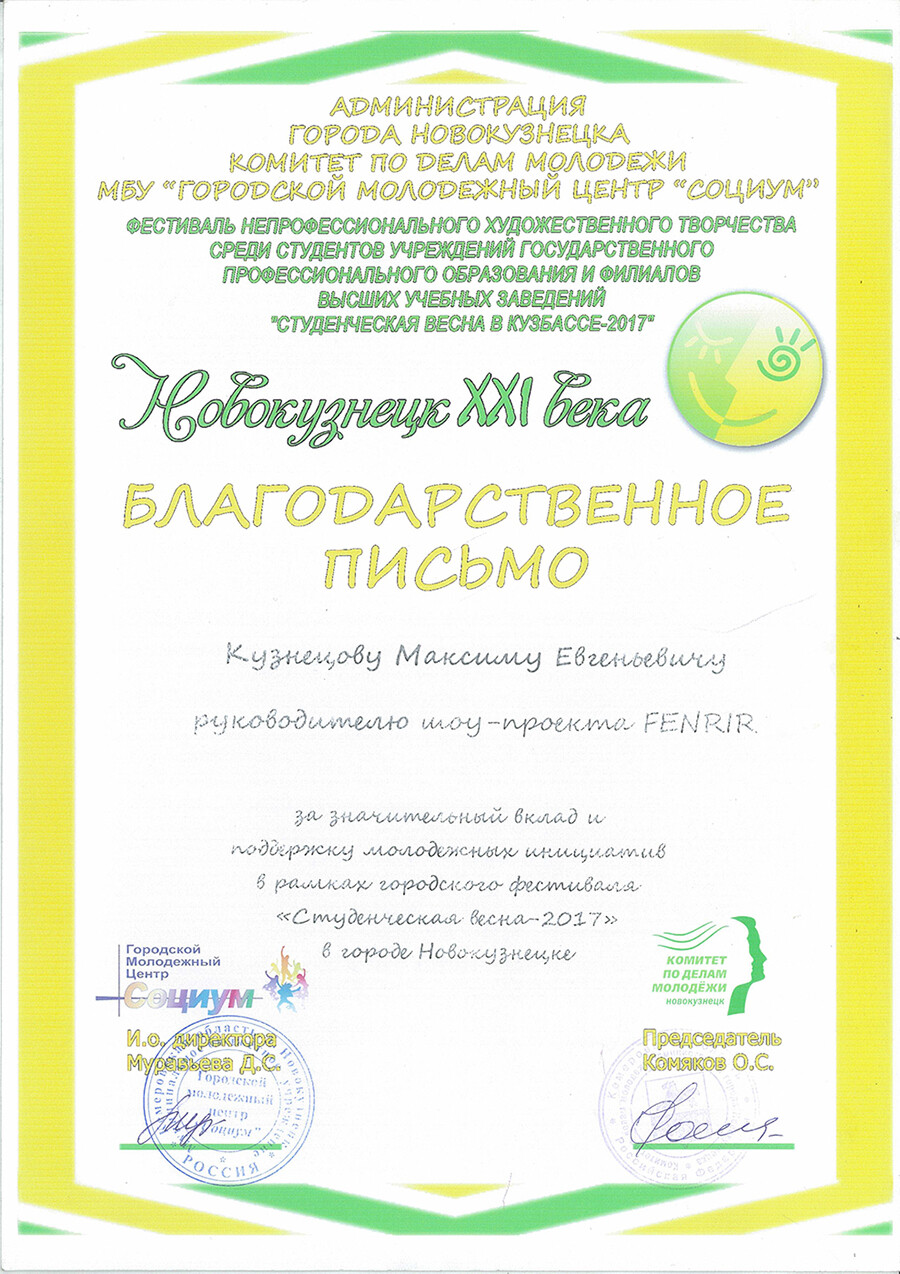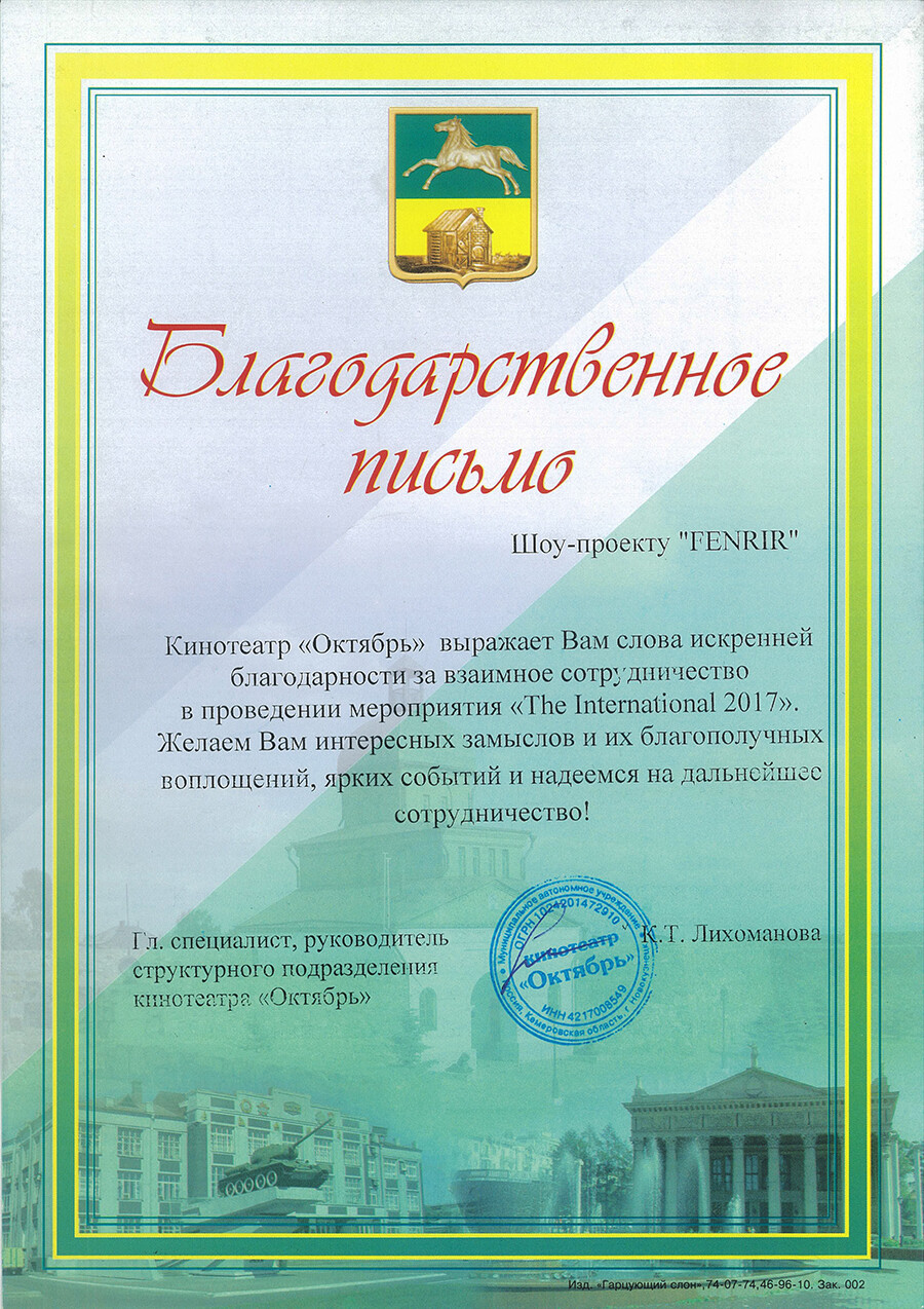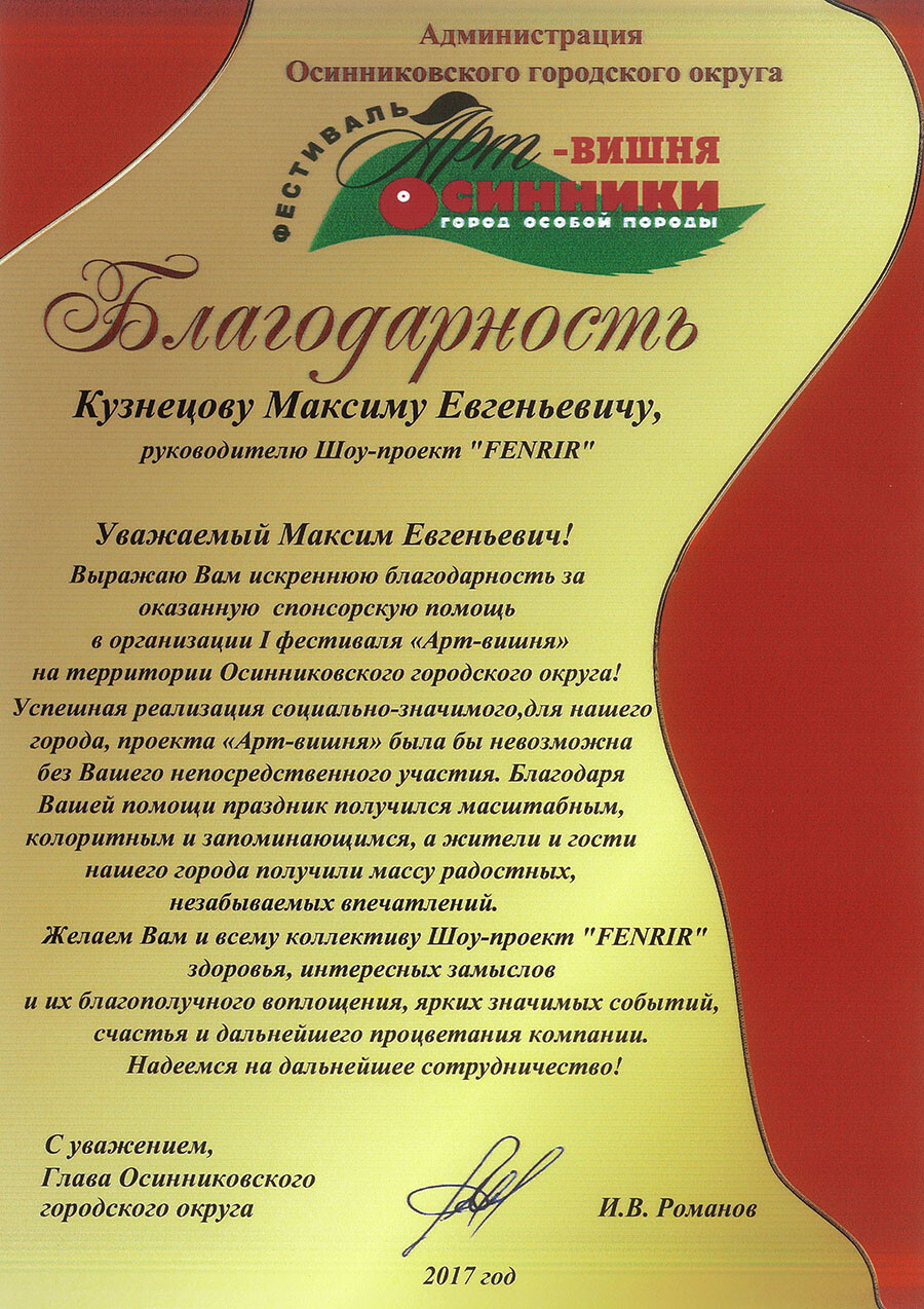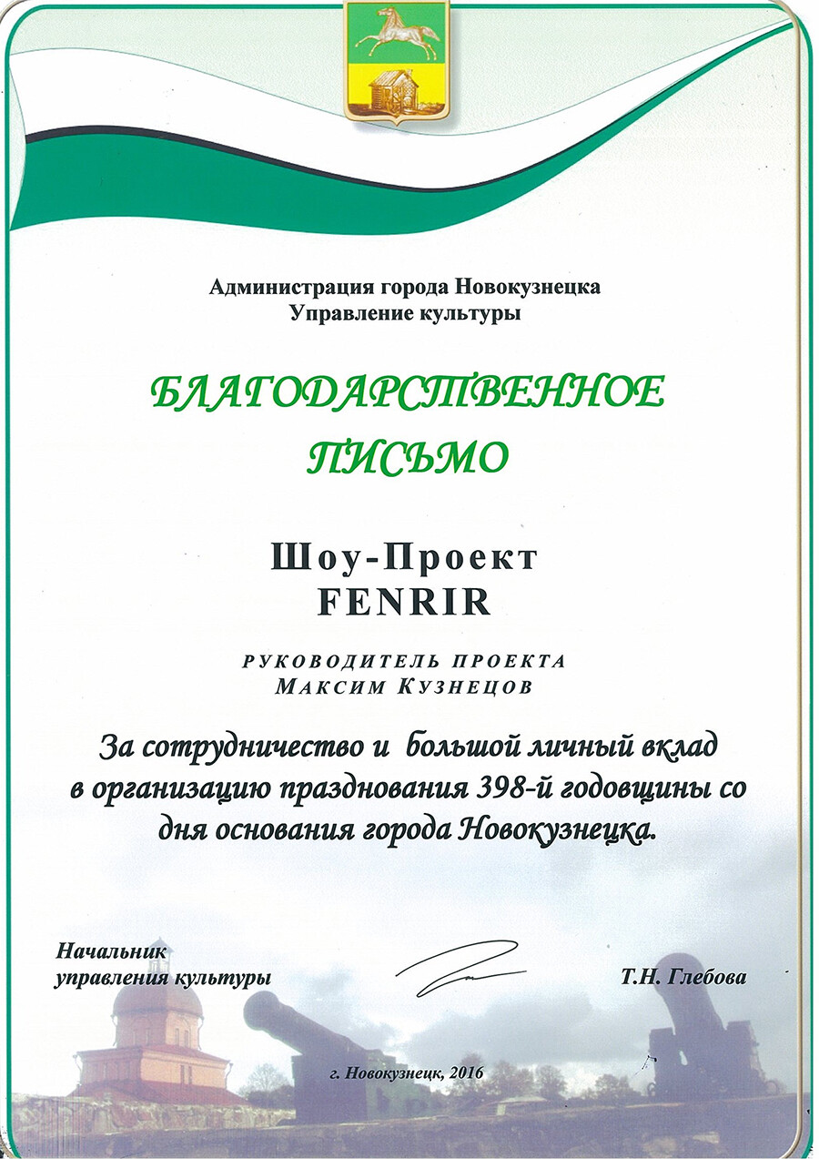 ВЫРАЖАЕМ ОГРОМНУЮ БЛАГОДАРНОСТЬ ОТ #КузбасскоетворческоеобъединениеАБЛАДА ШОУ ПРОЕКТУ FENRIR